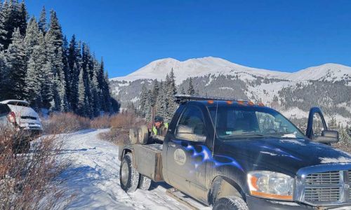 These trucks are usually running winch calls through out Breckenridge and Blue River. Blue River Colorado is an area that does not get a lot of sun so it tends to be a lot colder than Breckenridge. It is also higher in altitude than Frisco or Keystone so it tends to have slick roads and a lot of snow. By having smaller wreckers with four wheel drive, we are able to help a vehicle with no traction up an icy road or to run simple service calls fast and efficiently. This truck is able to provide jump starts, lockouts and flat tire changes from Beaver Run in Breckenridge to River Run in Keystone all in record time and at an affordable rate. While going back and forth, these wreckers can help pullout a stuck car on Swan Mountain Road on the way to Summit Cove in Dillon.